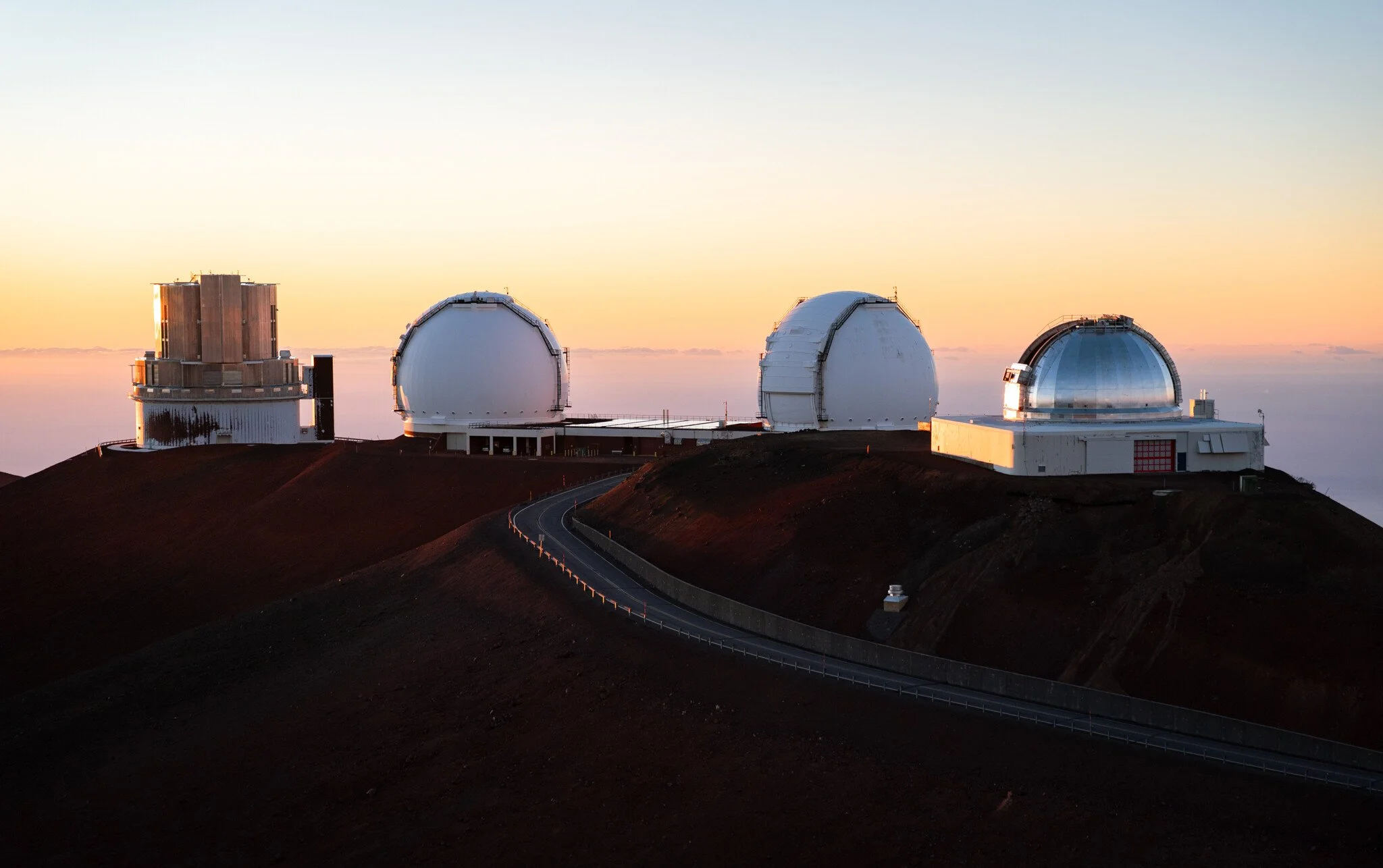 The summit of Mauna Kea is frigid and alien. After driving from the coast to 13,800 feet in four hours, I gasp for air walking up an incline. But the view is laid out on a panoramic platter: Oxidized red soil, just like on Mars, dotted with observatories from eleven different countries. The setting sun illuminates the cloud inversion and gives the reflective domes a pristine space-age white that I’ve only seen on an IMAX screen, typically on an object hurtling through space and usually accompanied by an explosion (See: Matt Damon blown backwards growing potatoes on Mars).