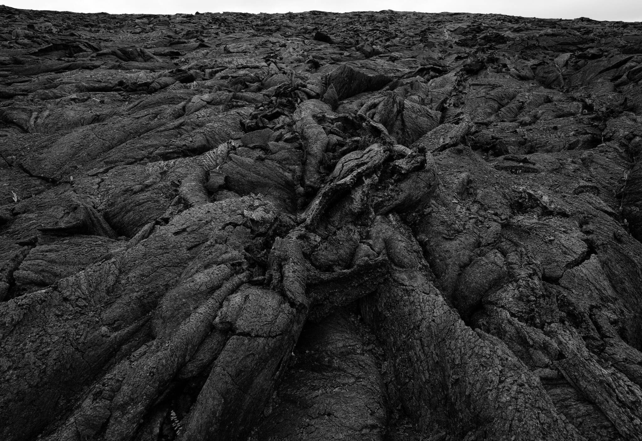 3. The path of destruction from the 2018 eruption. A flow that left one long scar down northeastern Big Island, destroying homes in Leilani and Kapoho. The road here was gated off; getting here required pushing through overgrown, derelict pavement until the asphalt and all greenery abruptly ended with the hardened lava pictured above. It stretches to the horizon.