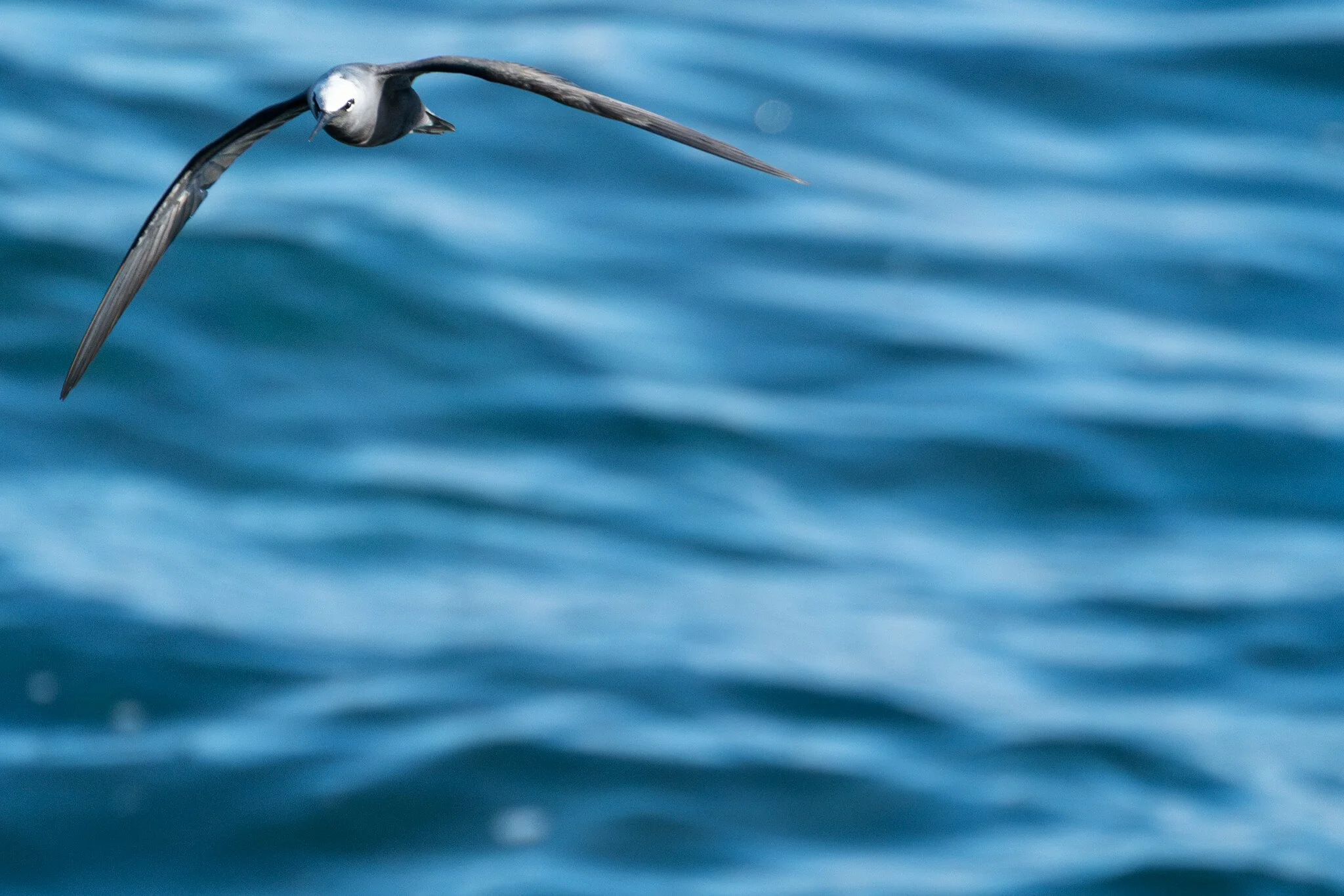 The Black Noddy. They roost just under the lips of lava cliffs by the water, sheltered from view. From dusk to dawn the noddies conduct short fishing missions, veering out over the churning water to catch small fish and squid before returning to the colony like a boomerang.
